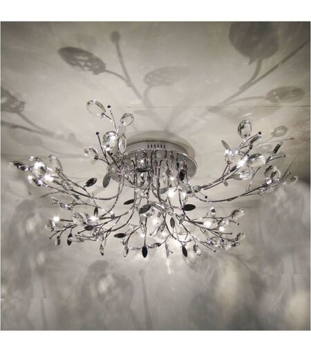 Ce magnifique plafonnier chromé est doté d'une belle capacité d'éclairage. Ce plafonnier saura vous séduire par ses multiples cristaux qui diffuseront la lumière dans tout votre espace de vie. Descriptif technique du luminaire : Culot de l'ampoule : G4 - LED 220/230V Ampoule : 13 x max 3W Indice de protection : IP20 Tension : 220/230V 50/60Hz Poids du luminaire : 4,2 kg Poids du colis : 5,4 kg Couleur du produit : Argenté / Chromé Matière : Métal et Cristal de verre Longueur : Largeur : 85 cm Hauteur : 35 cm Diamètre : 85 cm Profondeur : ...