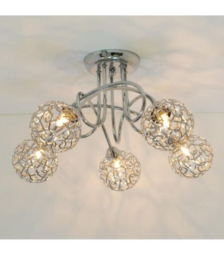 Description générale Offrez à votre intérieur une touche de modernité avec ce superbe plafonnier. Composé de 5 branches incurvées en métal chromé et de sphères en aluminium de 10 cm de diamètre, ce luminaire crée des jeux de lumière spectaculaires. Les ampoules G9 (non fournies) illuminent chaque sphère, produisant des effets lumineux enchanteurs qui ajoutent une touche de sophistication à votre décoration. Spécifications techniques Matériau : Métal chromé et aluminium Nombre de branches : 5 Diamètre des sphères : 10 cm Type d'ampoule : G9 (non fournies) Compatibilité et accessoires Compatible avec des ampoules G9 standard Accessoires recommandés : ampoules G9 LED pour une meilleure efficacité énergétique Installation Installation au plafond requise Instructions de montage incluses Vis et supports fournis Utilisation Idéal pour les salons, salles à manger ou bureaux, ce plafonnier apporte une ambiance chaleureuse et moderne. Il peut être utilisé comme source principale de lumière ou ...