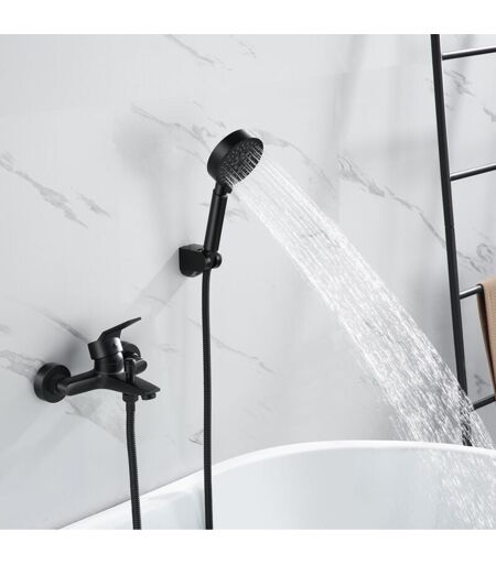 Auralum - Mitigeur de Baignoire Noir avec 5 Fonctions Douchette à Main, Robinet de Bain Mural en Laiton avec Flexible de douche 1,5 m pour Salle de