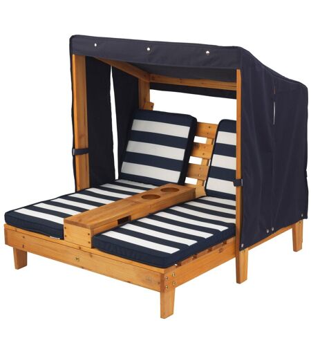 Kidkraft Double Chaise Longue Avec Porte-Gobelets - Couleur Miel Avec Coussins Bleu Et Blanc