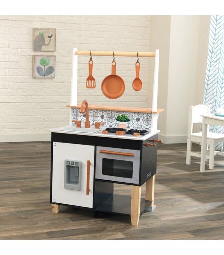 Cuisine Enfant 53441 KidKraft Artisan Island 59,99 x 49,61 x 69,09 cm.Votre enfant pourra faire la vaisselle dans l'évier et allumer les brûleurs pour se mettre au travail. Les portes du four et du réfrigérateur s'ouvrent et se ferment, ce qui offre beaucoup de plaisir interactif. Sous le four se trouve une étagère pour que votre enfant puisse ranger casseroles et poêles. Caractéristiques techniques : Dimensions approximatives : 59,99 x 49,61 x 69,09 cm ; Matériaux : bois et plastique ; Les portes du four et du réfrigérateur s'ouvrent et se ferment ; Crochets sur le côté permettant de suspendre des torchons ; Espace de rangement sous le four ; Comprend une poêle, une spatule, une cuillère et trois glaçons ; Distributeur de glaçons ; Robinet avec boutons rotatifs ; Comprend des instructions d'assemblage détaillées pas à pas ; Structure en bois ingénieuse et résistante ; Îlot de cuisine permettant un espace de jeu à 360º ; Âge recommandé : convient aux enfants à partir de 2 ans. Votre ...