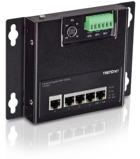 4 ports PoE+ Gigabit 1 port Gigabit Alimentation PoE totale de120W Capacité de commutation de 10 Gb/s Prise en charge des trames jumbo de 9KB Boîtier métallique renforcé de classe IP40 Support de montage rail DIN et kit de fixation murale magnétique fournis La température de fonctionnement va de -40 ¿ 75°C (-40 ¿ 167°F) Entrées d'alimentation redondantes avec protection contre les surcharges électriques Relais d'alarme déclenchée lors d'une coupure de courant Conformité NDAA / TAA Les séries de switches industriels PoE+ Gigabit avec accès frontal et fixation murale de TRENDnet sont parfaitement adaptées à la surveillance IP, à l'IoT et aux réseaux d'automatisation des domiciles et des entreprises. Ces switches industriels Gigabit plats renforcés offrent un accès frontal aux ports et aux interfaces d'alimentation pour une installation plus simple. Leur conception plate et compacte est idéale pour les installations dans les armoires informatiques où l'espace est limité. Chaque switch industriel renforcé à accès frontal dispose de ports PoE+ gigabit pour connecter des dispositifs tels que des points d'accès WiFi, des caméras IP et des dispositifs IoT. Ces switches renforcés à accès frontal sont fournis avec un solide boîtier métallique de classe IP40 et sont conçus pour résister à un degré élevé de vibrations et de chocs, tout en fonctionnant dans une large plage de température de -40° à 75 °C (-40° à 167 °F) pour les environnements industriels. ...
