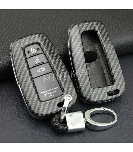 MIHUMOE Pour Toyota voiture clé housse Fob chaîne anneau coque Camry RAV4 Avalon Corolla C-HR Prius 86 GT86 Mirai 4runner fibre de carbone