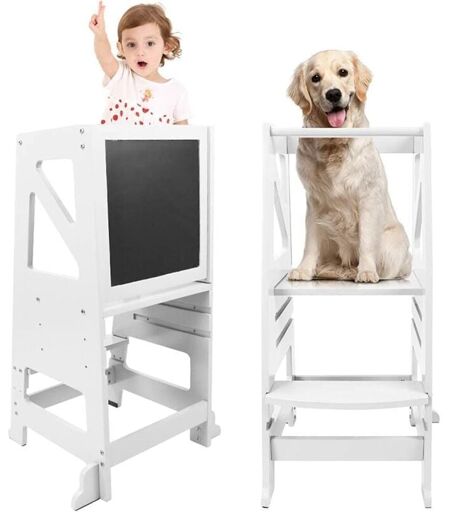 YOLEO Tour d'apprentissage en Bois,Tour d'observation pour Enfants,Montessori Learning Tower,Réglable en hauteur Marchepied pour bébé avec Tableau
