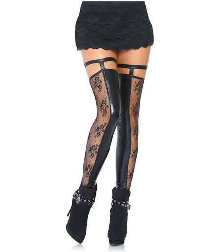 Leg Avenue Bas Mi-Cuisse 6902 Wetlook & Dentelle Noirs Sans Pied