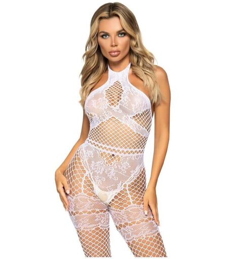 Leg Avenue Combinaison Ouverte 89291 Résille & Dentelle Blanche
