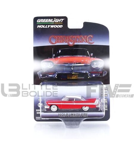 Manufacturer : GREENLIGHT COLLECTIBLES / Brand : PLYMOUTH / Type : Fury Christine - 1958 / Year : 1968 / Scale : 64 / Color : Red / White / Material : Metal / Manufacturer Ref : 44830C / Race Number : / Pilotes : / Comment : Film Christine version jour ...