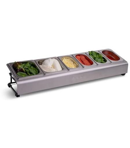 Prépare-toi à organiser des soirées pizza avec style grâce à la saladette Ooni. C'est le parfait outil pour préparer des ingrédients et garnitures. Grâce à son système de transport facile, les déplacements entre les cuisines intérieures et extérieures sont simples comme bonjour. Avec les deux bacs de 1,6 L et les quatre bacs de 0,8 L des récipients à garniture Ooni, tu auras toujours assez de garnitures pour préparer autant de pizzas que tu le souhaites. Les couvercles transparents et sur mesure de chaque bac te permettent de les empiler et les ranger facilement dans le réfrigérateur. L'armature avec revêtement en poudre résistante aux intempéries et le couvercle en acier inoxydable sont parfaitement adaptés aux tables modulaires Ooni. Par ailleurs, la saladette est facile à transporter pour être nettoyée et rangée. Crée ta cuisine extérieure et prépare tes pizzas comme un pro avec la saladette Ooni. Dimensions du produit non emballé : 77,6 x 24 x 16 cm (30,5 x 9,4 x 6,3?) Poids du produit non emballé : 3,9 kg (8,7 lbs) Dimensions du produit emballé : 85 x 24 x 18 cm (33,4 x 9,4 x 7?) Poids du produit emballé : 6,5 kg (14,3 lbs) Matériaux : Acier au carbone, acier inoxydable, plastique et silicone, avec revêtement en poudre. ...