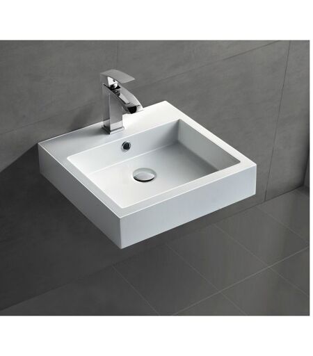 BERNSTEIN - Petit Lavabo design mural Vasque suspendue en marbre coulé avec bonde Pop-up - Blanc - 45x45x12,5cm - BS6050