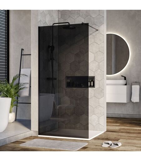 Bernstein - Paroi de douche à l'italienne verre trempé fumé nano 8mm - EX101 - profilé alu noir 15mm - H.200cm 1000mm