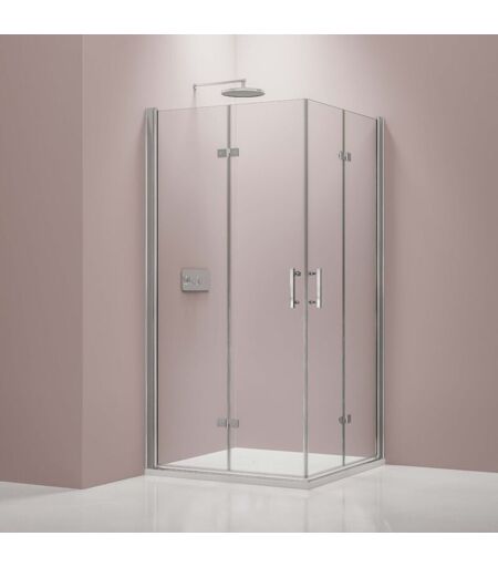 Bernstein - Cabine de douche d'angle en verre trempé 8mm, 2 portes battantes, Profilé Chrome - Taille porte gauche, porte droite: 80 cm, 90 cm