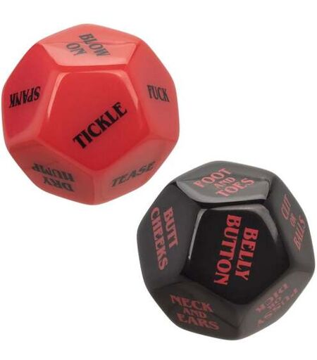 Nous sommes les Dés Coquins Roll Play Naughty Bits de Calextotics. Un jeu de dés coquins pour les couples voulant ajouter un peu de piquant ! Rien de mieux qu’une partie de dés coquins pour réchauffer l’ambiance. Le dé rouge va vous permettre de savoir quoi faire, le dé noir vous indique où le faire. Pour augmenter le plaisir, mettez-vous dans une pièce avec une lumière tamisée. Jetez-nous et laissez-vous guider… Il n’y a pas de perdant. Chaque session de jeu apporte son lot d'excitation et se termine par un état de plaisir à l'état pur ! ...