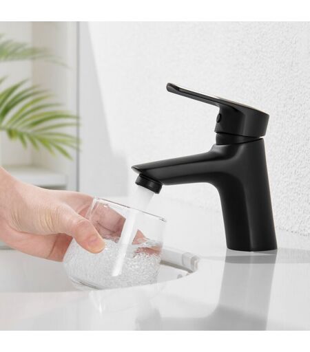 Auralum - Robinet de Lavabo Monotrou avec Barboteur Démontable Mitigeur Noir en Laiton pour Vasque/Lave-mains