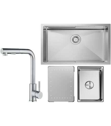 Cecipa - vier Cuisine 1 Bac 70×44×21CM Évier à Encastrer Inox Brossé avec Egouttoir et Vasque + Mitigeur Cuisine Brossé avec Douchette Extractible