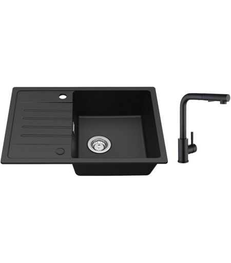 Cecipa - Evier de cuisine avec égouttoir Noir 65 x 45 cm Evier à encastrer Deux directions d'installation + Noir Mitigeur de Cuisine avec Douchette