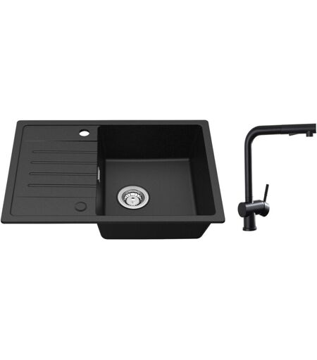 CECIPA Evier de cuisine avec égouttoir Noir 65 x 45 cm Evier à encastrer Deux directions d'installation + Robinets Cuisine avec Douchette Extractible,