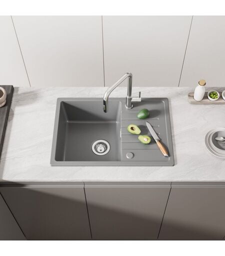 Cecipa - Evier de cuisine avec égouttoir - Gris 65 x 45 cm Evier à encastrer Quartz et résine - Evier 1 Bac avec étagère