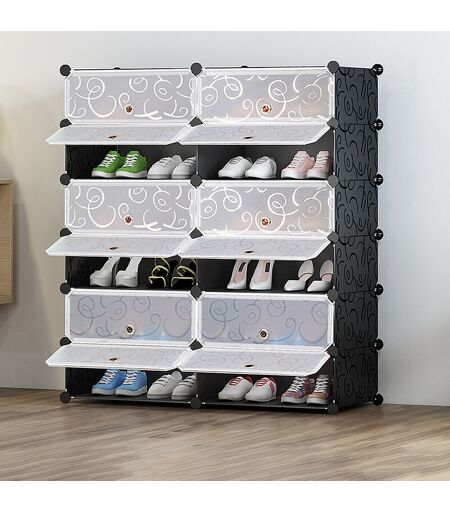 Jeobest - Meuble à Chaussures pour 24 Paires de Chaussures avec 12 Compartiments Facile à Monter Noire et Blanc Imprimée