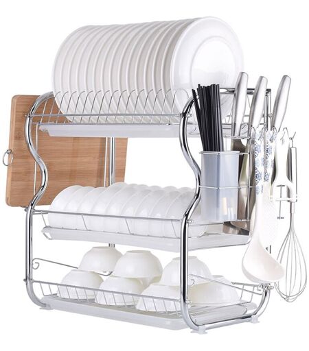Jeobest - gouttoir à vaisselle 3 étages Porte-couverts Bac de récupération crochets pour tasses et assiettes en métal Planche à découper