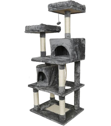 Yongqing - Arbre à chat, Griffoir+2 Niche Géant+Colonne en sisal+jouet+panier, Gris clair, Multi niveaux - Gris