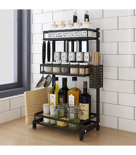 Jeobest - 3 Niveaux Étagère Meuble Rangement Cuisine Rack de finition de cuisine 34×21×61cm Noir