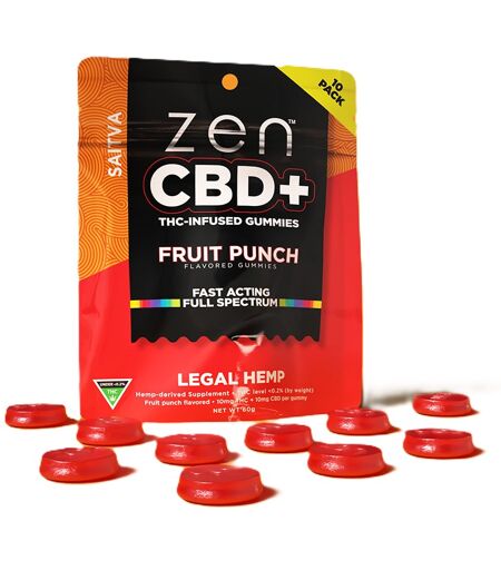 Zen CBD Zen Gummies Thc+ Fruit Punch Sativa, 10 Pièces, 200 Mg