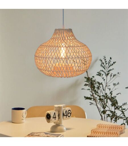 ARTURESTHOME Lustre de cuisine en osier, abat-jour rond en rotin, abat-jour de lampe suspendue, luminaire de plafond D30CM x HD26CM