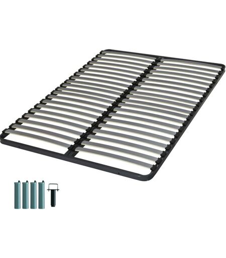 EN QUELQUES MOTS Le sommier + jeu de pieds 140x190 C220 2x20 lattes est votre meilleur allié pour jouir d'un sommeil de qualité. Ce sommier à lattes 140x190 est constitué de 40 lattes qui offrent de la fermeté et un soutien inégalé à votre matelas. Ce sommier + pieds de lit 140x190 joue aussi un rôle prépondérant dans la répartition du poids de chaque dormeur et celui du matelas pour prévenir l'affaissement. Pour plus de stabilité, ce cadre à lattes 140x190 est livré avec un jeu de 4 pieds solides et un pied de soutien qui lui permettent de faire directement office de lit. Pour vous faciliter la tâche, ce sommier métal deux personnes sera expédié rapidement et livré au pied de votre immeuble ou votre maison. INFO SOMMIER A LATTES + JEU DE PIEDS 140X190 EPSILON 2X20 LATTES Nom : Sommier + jeu de pieds 140x190 Epsilon 2x20 lattes Composition : Sommier + 4 pieds pvc hauteur 22 cm + 1 pied central réglable en acier Structure : Cadre métal cintré en tube rectangulaire de 40 x 27 x 2 mm, ...