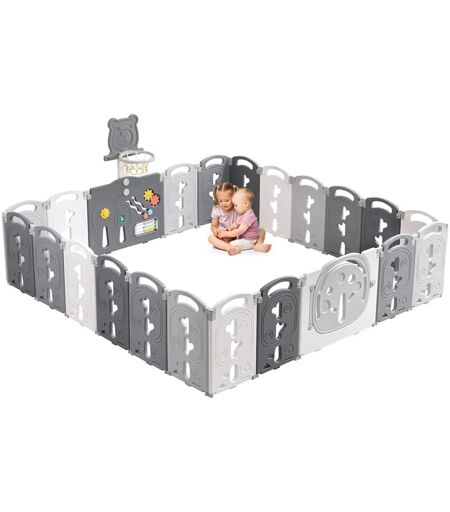 YOLEO Grand Parc Bébé Pliable 20+2 Panneaux,Barrière de Sécurité Portail Parc XXXL avec Panier de Basket,Parc Centre d'activités de sécurité,Gris
