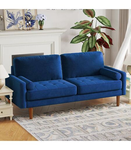 Keepbuying - Canapé Droit Salon 3 Places avec Accoudoirs en Velours Moderne,Canapé à Bras Roulés Loveseat,173L x 77l x 86H cm,Bleu