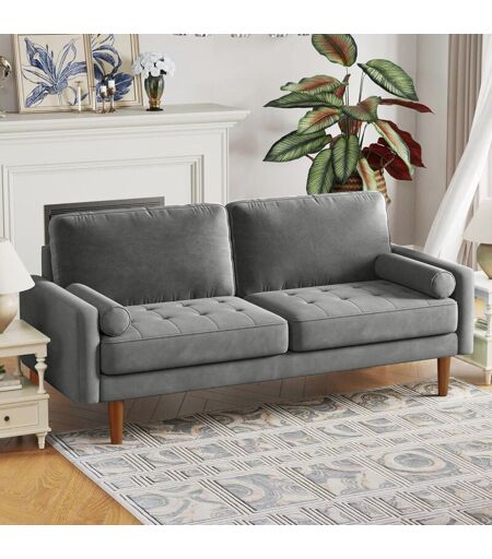 Keepbuying - Canapé Droit Salon 3 Places avec Accoudoirs en Velours Moderne,Canapé à Bras Roulés Loveseat,173L x 77l x 86H cm,Gris