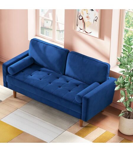 KEEPBUYING Canapé 2 Places en Velours Moderne,Canapé à Bras Roulés,Loveseat Salon avec Accoudoirs,148L x 78l x 85H cm,Bleu