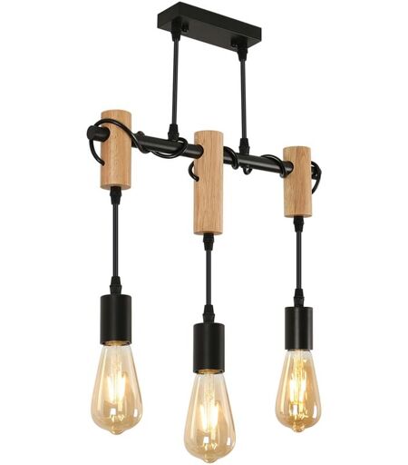 GOECO Suspension Luminaire Industrielle, Luminaire Plafonnier Vintage en Bois Noir, Lustre Suspension Industrielle, pour salon ou restaurant (Ampoule