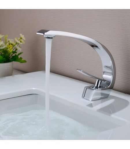 Description générale Robinet de lavabo en laiton mitigeur monotrou avec un design moderne en forme d'arc. Idéal pour les salles de bain contemporaines, ce robinet allie élégance et fonctionnalité. Spécifications techniques Matériau : corps en laiton, poignée en alliage de zinc Dimensions : 31 x 16 x 6,5 cm Poids net : 1,1 kg, Poids brut : 1,56 kg Hauteur de la sortie d'eau : 220 mm Distance minimale entre la sortie d'eau et le mur : 165 mm Épaisseur maximale du panneau d'installation : 30 mm Longueur du tuyau : 500 mm Diamètre de la valve : 25 mm Distance de trou de montage : 32-35 mm Durée de vie de la bobine : plus de 500 000 cycles Pression de l'eau : 0,5 à 5 Bar Débit à 3 bars : 6,9 GPM (26,1 L/min) Température de travail : 0-90 °C Compatibilité et accessoires Convient à la plupart des éviers et vasques à poser Inclus : 2 flexibles DIN 3/8, matériel de fixation, notice de montage Installation Installation facile grâce à des tuyaux de raccordement standards. Assurez-vous que la ...
