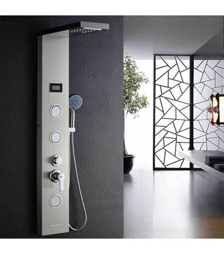 Auralum Colonne de Douche Hydromassante avec Lumières LED et Écran Affichage Temprérature 5 Fonctions Panneau de Douche en Acier Inox à 3 grand Jets