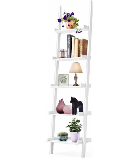 Goplus - Etagere de Rangement, Etagere Fleur,Etagere Escalier en Bois, Bibliotheque a 5 Niveaux, Meuble Murale pour Bureau, Salon, Chambre d'Etude,