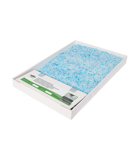 PetSafe vous propose ici un plateau de recharge BlueCristal adapté aux bacs à litière ScoopFree. Ces plateaux présentent de nombreux atouts qui vont vraiment faciliter la gestion de la litière de votre animal. Ils comportent un compartiment à déchets, et reposent sur un revêtement en plastique qui évite toute fuite et tout débordement. Vous avez juste à le disposer au fond de votre bac ScoopFree, sans ajouter aucune autre protection. Blue Cristal, la litière présente sur le plateau, a un effet immédiat : elle absorbe les urines et dessèche les excréments. Ainsi, aucune odeur ne se dégage de la maison de toilette de votre chat, ce qui est très confortable pour tout le monde. La recharge a un léger parfum fraîcheur, très agréable. Elle ne fait pas de poussière et ne colle pas aux coussinets de votre animal, votre intérieur reste propre et sain ! Cette recharge peut durer jusqu’à 4 semaines si elle est utilisée par un seul chat. Lors du remplacement, il vous suffit de la déposer dans la boîte en carton refermable prévue à cet effet, et de l’éliminer avec vos déchets ménagers. Ce bac de rechange pour litière ScoopFree est très hygiénique, vous ne touchez à rien, tout est jetable, et votre maison reste toujours propre, sans aucune mauvaise odeur ! ...
