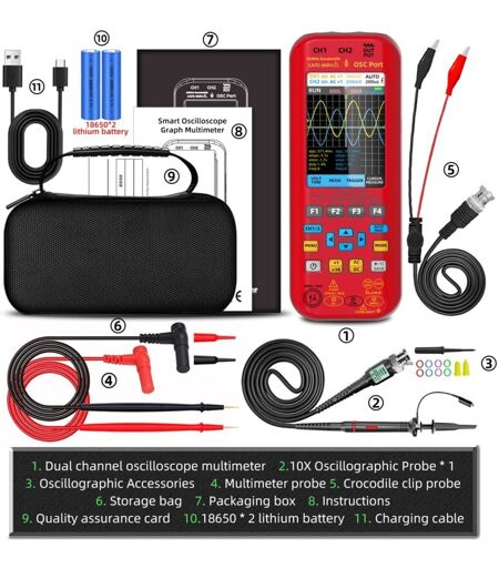 OSCILLOSCOPE PLUS RAPIDE: BSIDE O9 oscilloscope à deux voies avec une bande passante de 50 MHz, un taux d'échantillonnage en temps réel de 250MSa/S, une profondeur de stockage de 128K, offre une capture automatique ou manuelle rapide de la forme d'onde, une mesure du curseur, des fonctions de défilement XY YT, etc. Un seul bouton permet de changer rapidement de canal, de couplage AC DC et de rapport d'atténuation. La fonction de temps de rémanence permet d'observer les changements de signal à long terme ou de capturer les transitoires. MULTIMÈTRE & GÉNÉRATEUR DE SIGNAUX: Multimètre TRMS de haute précision, mesure la tension AC de 0 à 750V, la tension DC de 0 à 1000V, les millivolts, les milliampères, la résistance, la capacité, la continuité, les diodes et la température. Un bouton permet d'accéder au générateur de signaux DDS, qui peut produire 7 formes d'ondes: Sinusoïdale, carrée, demi, pleine, triangle, rampe, formes d'onde DC. 3,98 POUCES SUPER GRAND ÉCRAN: Cet oscilloscope ...