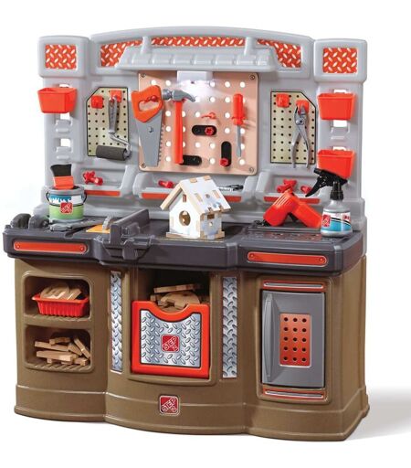 L'atelier Big Builders Pro de Step2 propose des outils ? la sonorit? r?aliste qui am?liorent l'amusement du jeu de simulation! Les enfants peuvent construire une maison pour oiseaux , en d?veloppant leur motricit? fine en martelant, en sciant et en forant. Une fois cette maison construite, les enfants la ?peignent? avec de l'eau ? l'aide du pinceau (inclus) , du rouleau (inclus) ou du vaporisateur (inclus), et changent sa couleur comme par magie! L'?tau de travail maintient les projets stables. Une ? scie ? circulaire m?canique est int?gr?e dans l'atelier. Inclus une lumi?re au-dessus du rangement des outils et une ? perceuse ? ? bruits ?lectroniques (n?cessite quatre piles ?AA? et trois piles ?AAA?, non incluses). Grande surface de travail , nombreux espaces de rangements et bac int?gr? pour un nettoyage facile Scie ? roue m?canique int?gr?e ? l'?tabli Ensemble d'accessoires de 45 pi?ces Dimensions: 98 x 70 x H 86cm. Poids: 9kg Pour enfants ? partir de 3 ans . Fabriqu? aux USA. Garantie de 3 ans. Produit en plastique ""roto-moul?"" ? double parois, extr?mement r?sistant. Les produits Step2 supportent des temp?ratures extr?mes, sont anti-UV et ont tous des bords arrondis. Ils sont aux normes Europ?ennes EN71 et CE. Assemblage minimal par un adulte requis ...
