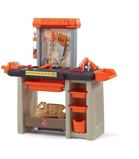 L'atelier Bricoleur de Step2 est l'atelier parfait pour un petit gar?on ou une fille bien pratique! Il aide ? d?velopper les habilet?s motrices pendant que les enfants jouent avec la perceuse, la scie et le marteau , tous factices. De plus, il gardera les petites imaginations occup?es pendant des heures! Plus de 30 pi?ces comprenant des outils en plastique dont certains ?lectriques, des blocs de mousse ? assembler et une lampe de travail ? Quatre bacs de rangement pour un nettoyage facile ? Panneau perfor? avec pinces pour accrocher les outils avec soin ? La perceuse ?lectrique fonctionne comme une vraie, comme la lampe de travail amovible (n?cessite 2 piles LR06 et 3 piles LR03, non fournies) ? Un kit en mousse imitation bois r?aliste garde les enfants occup?s ? construire une maquette ? Un ?tau de travail maintient les projets stables ? Grande surface de travail pour toutes sortes de projets cr?atifs. Dimensions: 92 x 33 x H 90cm. Garantie de 3 ans. La marque Step2 est reconnue pour sa qualit? in?gal?e: cuisine en plastique ""roto-moul?"" ? double parois extr?mement r?sistant, fabriqu?e aux USA ( hors petits accessoires) ...