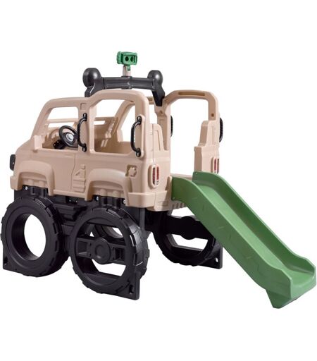 Transformez votre jardin en une aventure sauvage avec l'escaladeur camion Step2 Safari! Ce jouet d'escalade robuste de type camion tout-terrain présente un design tout-terrain réaliste, avec des roues surdimensionnées, une palette de couleurs neutres, un toit ouvert et une calandre cool avec des décalcomanies de phares. Il est même équipé de jumelles pour repérer les animaux sauvages ! Les petits aventuriers peuvent ramper dans les roues surdimensionnées ou les utiliser comme des escaliers pour grimper jusqu'à la plate-forme supérieure. Dans le véhicule tout-terrain, les enfants peuvent se relayer au volant et regarder dans les jumelles. Lorsque vos petits sont prêts à voir la faune de plus près, ils peuvent glisser sur le toboggan et se promener librement parmi les animaux ! Vos enfants peuvent grimper, ramper, glisser et bien plus encore avec cet- ...