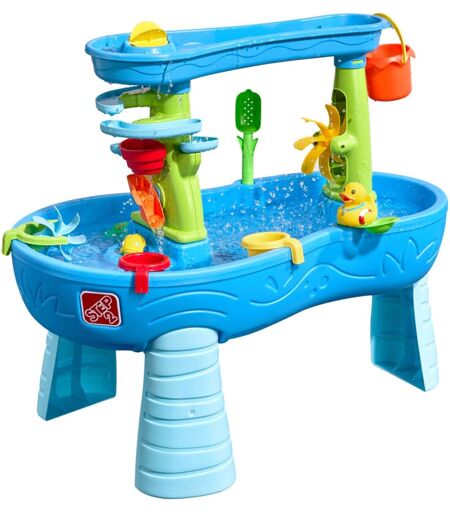 La table d'eau Double Showers Splash de Step2 est un excellent moyen pour les enfants d'explorer les jeux d'eau. Qu'il s'agisse de faire des averses cool ou de comprendre les causes et les effets, il y a beaucoup de choses à découvrir avec cette table d'eau ! Créez un mini parc aquatique dans votre jardin avec la table d'eau Double Showers Splash à deux niveaux. Versez de l'eau dans le bassin supérieur pour faire pleuvoir en dessous. Deux rangées d'averses activent la grande roue sur le côté et s'écoulent le long des toboggans aquatiques jusqu'à la balançoire de l'autre côté de la table d'eau. Les enfants s'amuseront à partager les accessoires, à s'éclabousser avec de l'eau et à exercer ensemble leur motricité globale et fine. Grâce à sa conception spacieuse et ouverte, il y a- ...