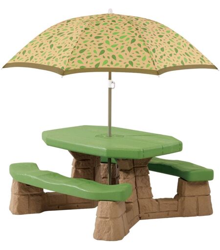 STEP 2 Step2 Naturally Playful Table Picnic Enfant en Marron / Vert avec Parasol Banc Pique Nique pour Enfants en Plastique