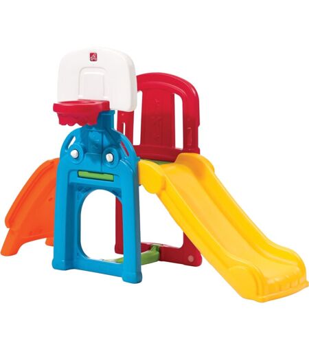 Le Step2 Step2 Game Time - Toboggan et Bac à sable de basket ne manquera pas d'amuser les petits athlètes qui grimpent, smashent, glissent, donnent des coups de pied et rampent. Les petits peuvent jouer au basket-ball avec les anneaux de basket-ball intégrés, utiliser le trou dans le passage en rampant comme but de football et compter les points sur le tableau d'affichage. Les enfants développent leur motricité globale en grimpant sur l'échelle et en glissant sur le toboggan. Amusez-vous sans fin avec le cadre d'escalade Game Time Sports! Tableau d'affichage intégré - il suffit de tourner les cadrans ! Comprend une échelle d'escalade, un toboggan, un anneau de basket-ball, un but de football et un mur de projection Tunnel de reptation Aide les enfants à apprendre à lancer, à tirer et à frapper la cible Ballon de saport multifonctionnel inclus Poids maximum pour l'ensemble d'escalade : 27,2 kg - ...