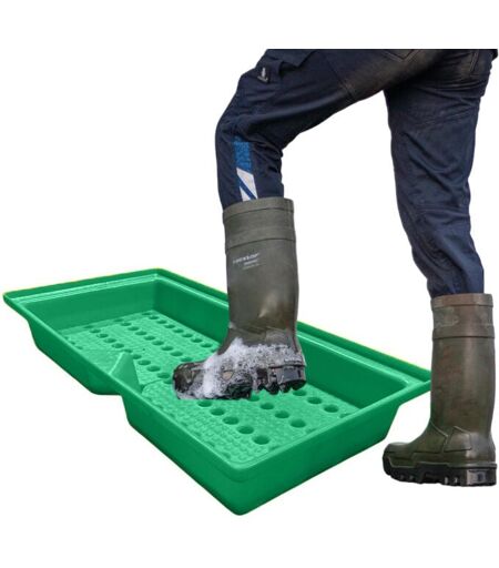 Pédiluve rotomoulé d'une capacité de 70 litres, conçu pour garantir une hygiène optimale et résister aux conditions les plus exigeantes. Fabriqué grâce au procédé de rotomoulage, ce pédiluve se distingue par sa robustesse exceptionnelle et sa durabilité, en faisant un équipement idéal pour les environnements agricoles, industriels et sanitaires où les normes d'hygiène sont strictes Plaque antidérapante Intégrée : fixée au fond du pédiluve renforce la sécurité en améliorant l'adhérence, empêchant les glissades même avec une solution désinfectante. Le polyéthylène rotomoulé garantit une résistance exceptionnelle aux chocs, aux produits chimiques et aux variations de température, tout en étant durable et léger. Capacité : 70L Longueur : 104 cm Hauteur : 14.5 cm Largeur : 52 cm Poids : 7 kg Pour usage de pédiluve Matière : polyéthylène haute densité (contact alimentaire) Très résistant aux chocs, plage d'utilisation : -30°C à +60°C 100% recyclable-empilable pour un rangement optimisé ...