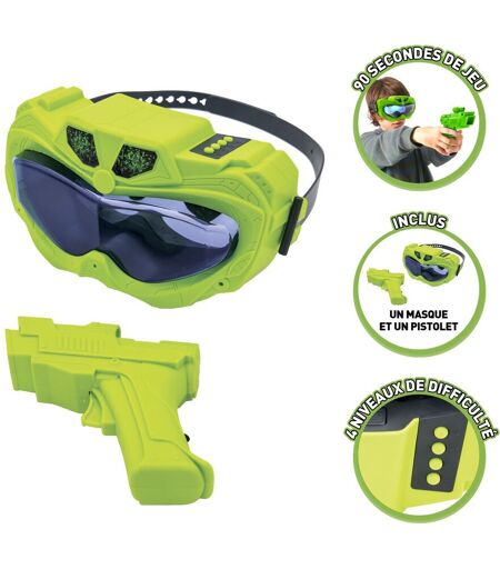 Vise et ?limine les aliens verts et jaunes qui sont projet?s ? l'int?rieur de ton masque 3D ! 90 secondes pour marquer le plus de points possible ! Le score sera annonc? ? la fin de la partie. Possibilit? de jouer seul(e) ou ? plusieurs (? tour de r?le) Inclus 1 masque 3D et 1 pistolet! 4 niveaux de difficult? (facile, moyen, difficile, survivant). ? partir de 5 ans. ...