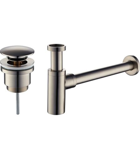 TECOM Ensemble bonde de lavabo et siphon couleur acier brossé, modèle rond Damast KITSCA4 Nickel brossé