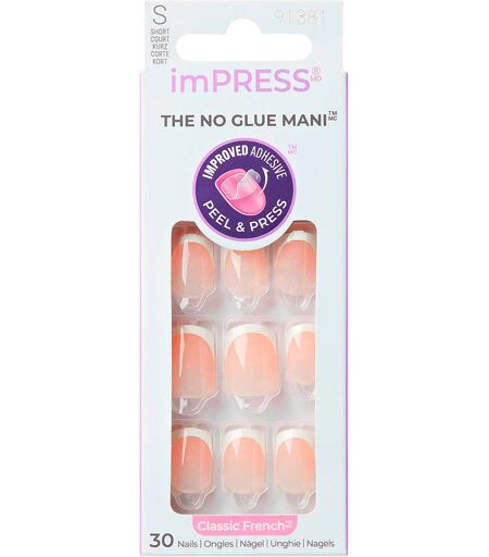 Envie d'une nouvelle French Manucure autocollante ? Dis "oui" aux imPRESS Press-On Nails. Grâce à la nouvelle "technologie PureFit", ces ongles autocollants ont une longue durée de vie et tiennent en toute sécurité jusqu'à 7 jours. Il suffit de les décoller, d'appuyer et c'est tout ! Des ongles French Press-On classiques et courts avec des pointes blanches, La manucure autocollante immédiate qui ménage tes ongles naturels, La manucure la plus simple - il suffit de décoller, de presser et c'est parti, Nouvelle colle améliorée pour une bonne tenue jusqu'à 7 jours, Le set d'ongles contient 30 ongles Press-On parfaitement manucurés, un pad de préparation, une mini-lime à ongles et un crayon de manucure. Choisir la taille : Avant la pose : Tiens les ongles avec les petits onglets en direction de tes cuticules. Choisis la taille appropriée pour chaque ongle (1 est la plus grande, 11 la plus petite). Si tu es entre deux tailles, opte pour la plus petite. Préparation : lave soigneusement tes mains avec du savon et de l'eau, puis sèche-les bien. Repousse délicatement les cuticules à l'aide du pousse-cuticules fourni. Nettoie ensuite soigneusement tes ongles avec le tampon de nettoyage fourni afin de garantir une adhérence optimale. (Comme alternative ou en complément, tu peux aussi utiliser de l'alcool). Pose des nails : retire la couche de protection des nails. Appuie ensuite le nail au milieu et des deux côtés en même temps sur ton véritable ongle et maintiens-le pendant 30 secondes. (Pose les ongles du pouce en dernier). Laisse tes mains sécher pendant au moins une heure et évite de limer les ongles jusqu'à ce qu'ils soient complètement collés. Avertissement : Provoque une grave irritation des yeux. Peut provoquer somnolence et vertiges. Liquides et vapeurs facilement inflammables. Se laver soigneusement le visage, les mains et la peau exposée après utilisation. Porter des gants de protection/des vêtements de protection/un équipement de protection des yeux/du visage. Éviter de respirer les poussières/fumées/gaz/brouillards/vapeurs/aérosols. Utiliser uniquement à l'extérieur ou dans des locaux bien ventilés. Porter un équipement de protection des yeux/du visage. Tenir à l'écart de la chaleur/des étincelles/des flammes nues/des surfaces chaudes. Ne pas fumer. Maintenir le récipient hermétiquement fermé. Mettre à la terre le récipient et l'installation à remplir. Utiliser du matériel électrique/de ventilation/d'éclairage/d'équipement antidéflagrant. Utiliser uniquement des outils ne produisant pas d'étincelles. Prendre des mesures de précaution contre les charges électrostatiques. ...