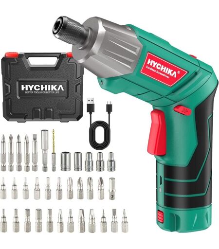 HYCHIKA Visseuse Sans Fil 6Nm, Visseuse Devisseuse sans Fil 2.0Ah 3.6V Avec 35 Accessoires, Lampe LED, Câble USB et Boîte de Rangement, Pour la