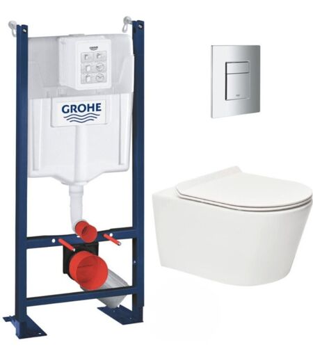 Grohe - Pack wc Bâti autoportant + wc sans bride sat Brevis + Abattant ultra-fin softclose + Plaque chrome (ProjectBrevis-1)